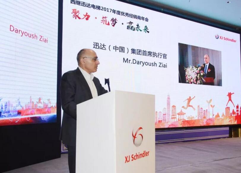 隨后,迅達集團副總裁、迅達中國區總裁、首席執行官Mr.Daryoush Ziai致辭,他首先祝賀西繼迅達以及與會的各位經銷商在2017年取得的優異成績。他指出,西繼迅達是迅達集團在全球范圍內重要的合作伙伴,在迅達集團眾多經營實體中被列為最高等級A級,這是迅達集團對西繼迅達的高度肯定,同時也說明西繼迅達的生產銷售已經達到了一定規模。作為行業的引領者,我們非常驕傲,但眼前的成績不代表未來的成功,對于未來的發展我們要提高警惕,不斷去適應市場變化,去尋找市場機遇,相信在2018我們一定可以更加燦爛輝煌。