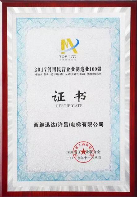 西繼迅達榮膺河南省百強企業稱號